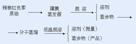 傳統的辣椒紅色素提取法一般為溶劑萃取法,而最終產品中往往存在 1~2% 的溶劑,經分子蒸餾脫溶后,產品中溶劑殘留量可< 20PPM ,大大提高產品質量。