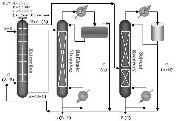 The multiple continuous extraction adopts a column equipment named as extraction column. Its internal structure uses gravity or mechanical action to break a liquid into droplets, disperses the droplets into another continuous liquid, and performs the liquid-liquid extraction. The extraction column has many types of structures, it can be divided into different types according to the mixed form of solvent and feed solution as well as the structure of column plate.